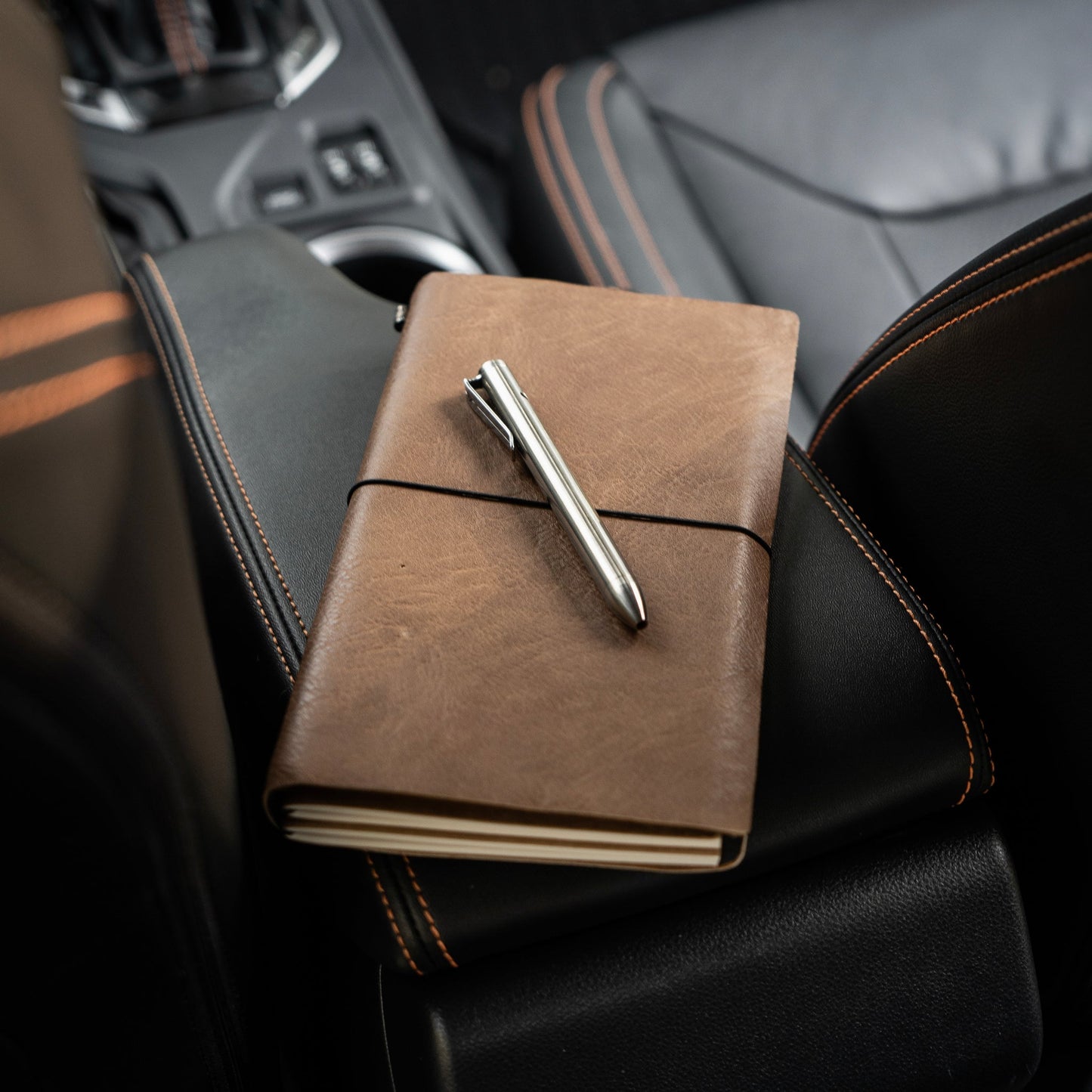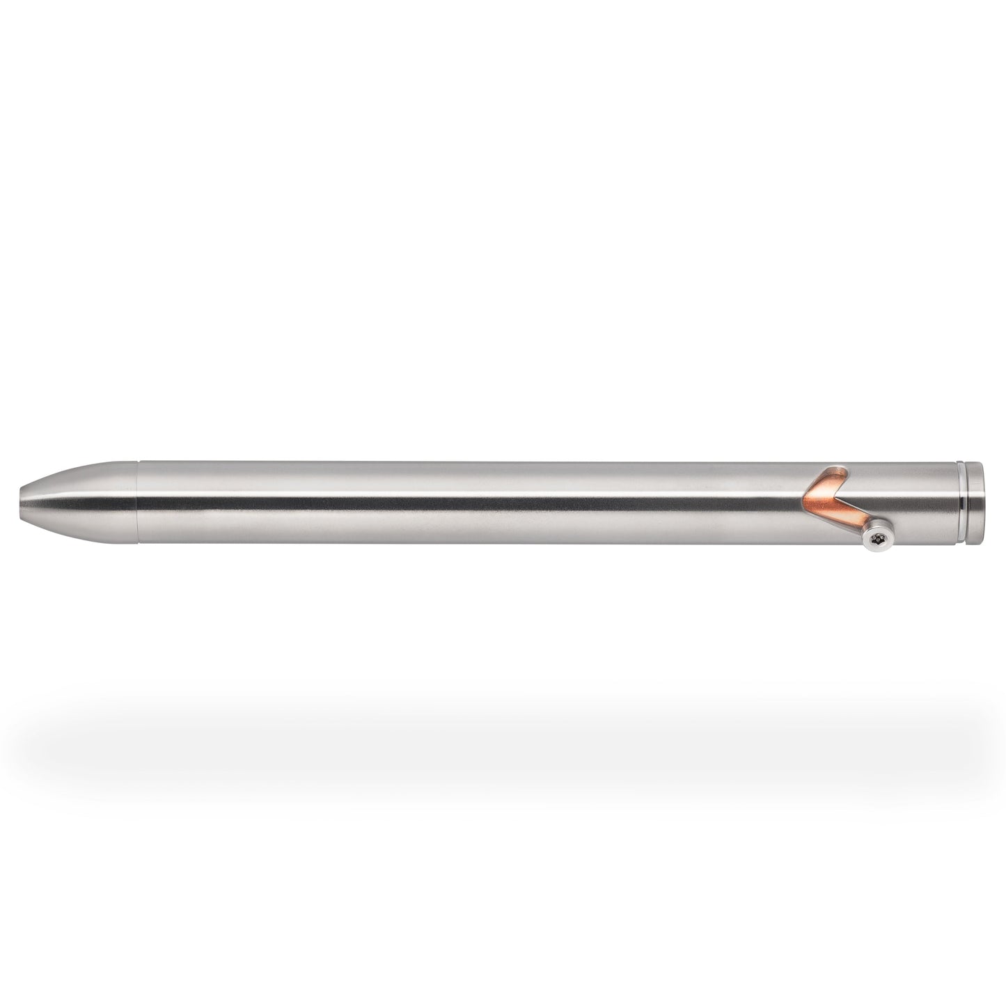 Made from solid grade 5 titanium, this is the lightest pen we make - and still one of the toughest. The body, top cap, tip, and even the thumb stud are all machined from a single block of titanium, keeping things clean, minimal, and built to last. The clip’s stainless steel - on purpose. It’s got better spring memory, and that matters if you're clipping it on and off every day.